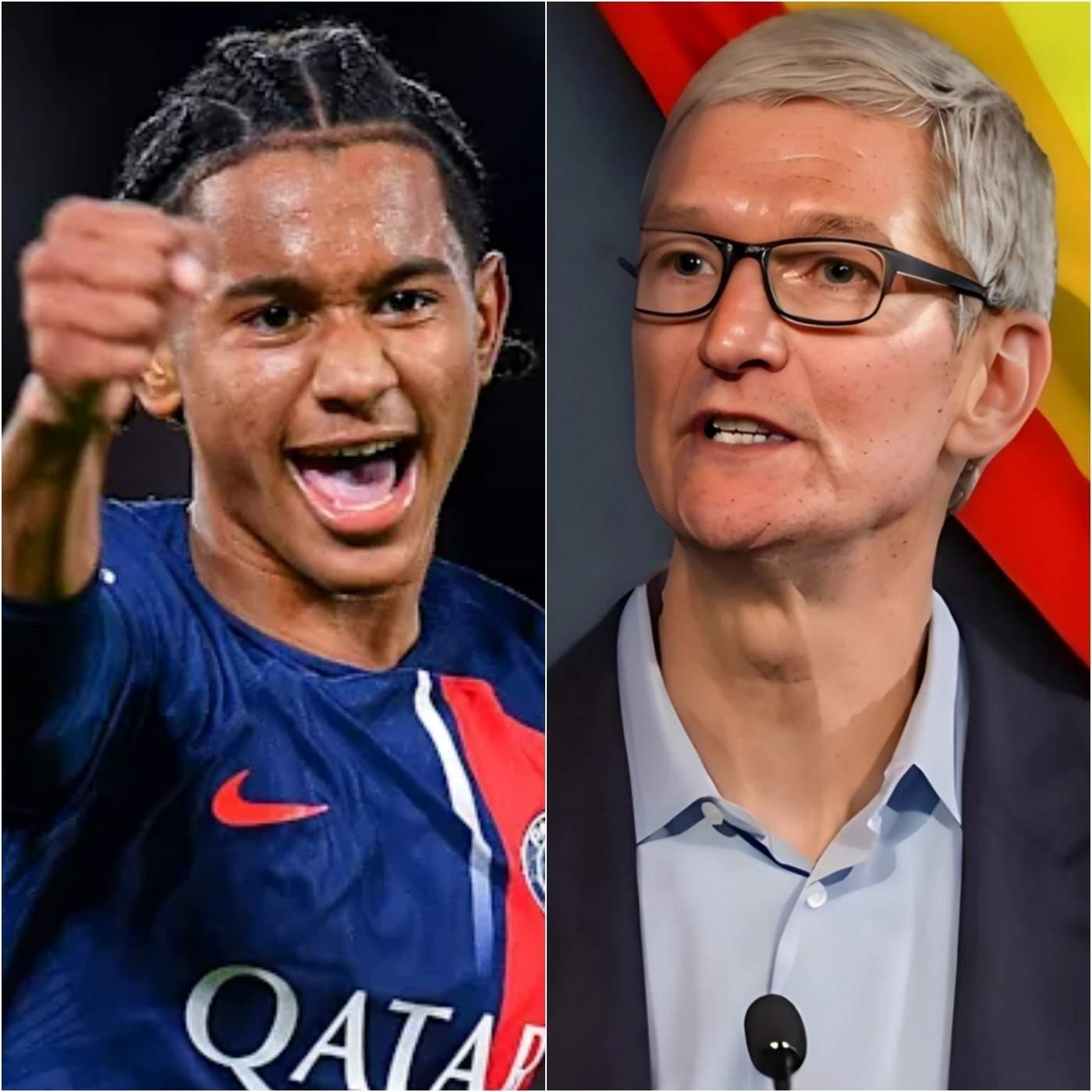 DERNIÈRES NOUVELLES – Le monde du football et celui des affaires viennent de se percuter dans une tempête médiatique sans précédent. Lorsque le nom de Tim Cook, PDG d’Apple et figure emblématique de la communauté LGBT, est associé à celui de Senny Mayulu, le jeune prodige du PSG, cela ne peut qu’attirer les projecteurs. Mais cette fois, l’histoire dépasse largement le cadre sportif. Selon plusieurs sources proches du dossier, Tim Cook aurait proposé un contrat monumental d’une valeur estimée à 199 millions de dollars à la pépite parisienne, avec une clause particulière qui a immédiatement fait exploser les débats : l’obligation pour Mayulu d’apparaître dans chaque publicité ou événement officiel lié à la cause LGBT.